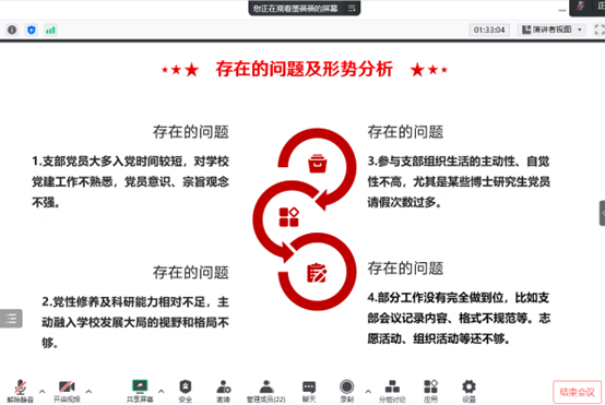 一年来的各项工作取得显著成效予以充分肯定,同时也指出各支部工作有很多的特色及亮点,仍需要在推广和宣传报道上进一步下功夫。