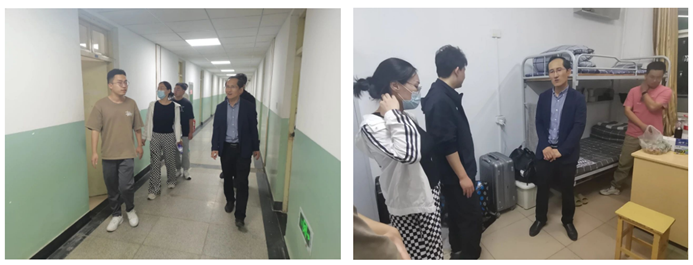 为及时了解新生思想动态、心理状况及新生宿舍卫生情况,确保学生管理工作有序、平稳开展和推进,2023年9月15日晚八点,色情av影片党委书记廖海洪、院长王强、副院长刘斌、各专业负责人、院团委书记郝诗韵等领导老师兵分两路,对本科及研究生新生宿舍进行走访慰问,深入了解新生情况。