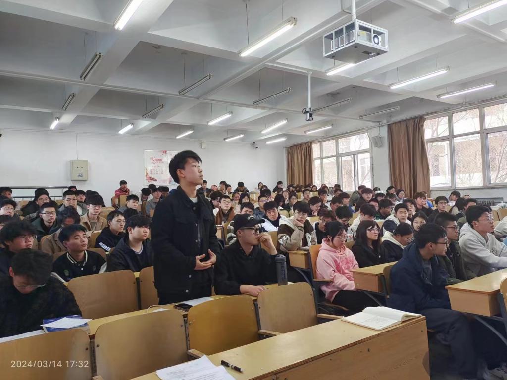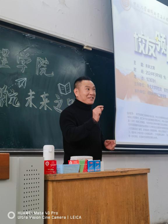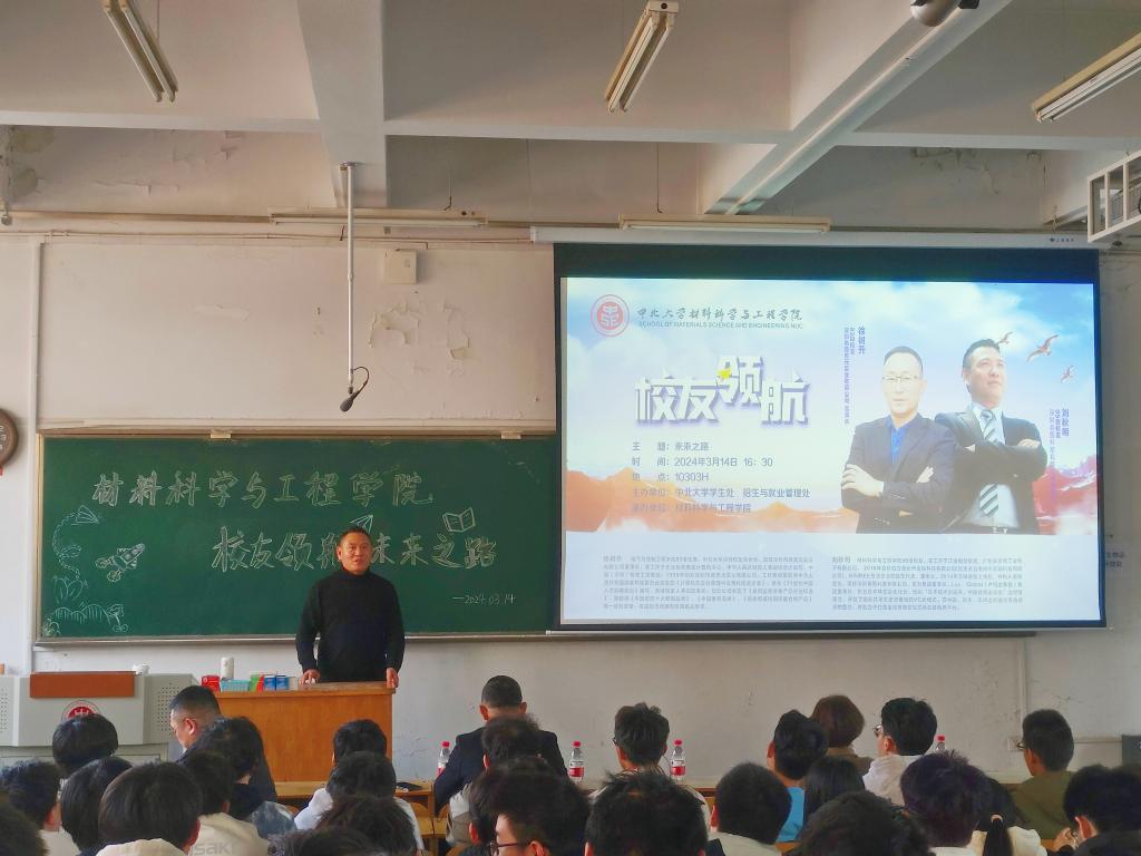 在10303H举办“校友领航”主题讲座。本次活动特邀深圳德天元实业有限公司董事长徐树升(83级校友)、深圳春图科技有限公司董事长刘秋明(95级校友)、深圳喔喔牛科技有限公司董事长张凌三位嘉宾就大学生如何走好未来之路展开面对面交流。院党委副书记郭云霞、团委书记郝诗韵、辅导员褚嫱老师同二百余名材料学子共同参加了本次活动。