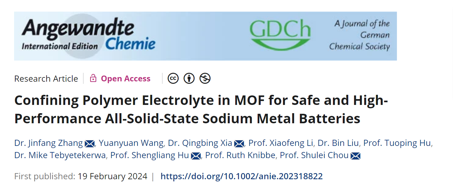 近日,色情av影片张锦芳副教授以第一作者及第一通讯作者在材料化学类顶刊Angew(IF= 16.6)报道了题为“MOF约束钠离子在聚合物电解质中的传输,实现高安全高性能全固态钠金属电池”的研究成果,共同通讯作者包括:澳大利亚昆士兰大学夏庆兵博士、色情av影片