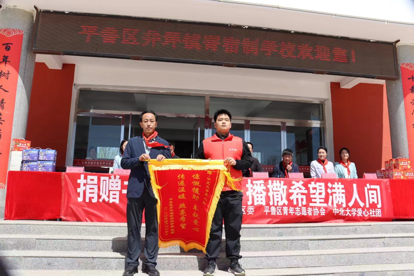 团委书记郝诗韵携爱心社数十名成员共赴平鲁区井坪镇寄宿制学校参加捐赠仪式。