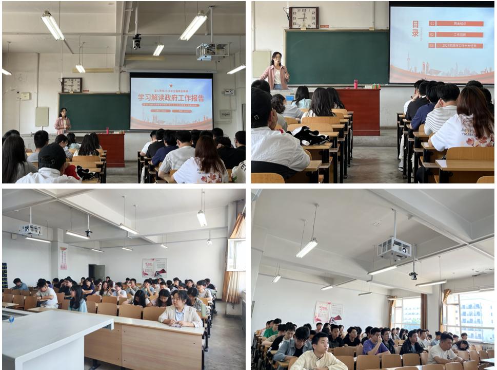 王老师围绕“学习贯彻两会精神,做奋发有为好青年”主题展开分享,向同学们介绍了两会相关知识,带领同学们回顾了过去一年国家的工作内容,并对2024年政府工作报告进行了深入浅出的全文解读。此外,结合学生专业特点及转变的培养方式,对两会的热词进行解读和剖析,鼓励同学们要开拓创新、与时俱进,深刻领悟和践行两会精神,努力成长为能担大任的新时代青年。