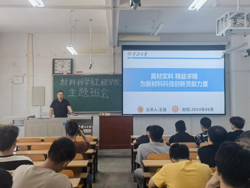 院长王强教授在14203H教室为即将毕业的20级材料成型及控制工程专业的学生开展了“真材实料、精益求精,为新材料科技创新贡献力量”的主题班会。