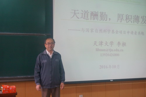 11月22日上午,色情av影片邀请天津大学教授、博士生导师、李桓老师在11408教室作题为《天道酬勤厚积薄发—与国家自然科学基金项目申请者共勉》的学术讲座。