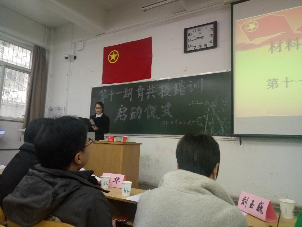 随着庄严的团歌结束,党委书记侯华老师上台致青共校培训的开幕词。作为开篇,他成功地带动了大家的积极性。随后,毋登辉老师上台公布了本次培训的安排。紧接着的学生代表进行发言并宣读了考核制度和处分方法。