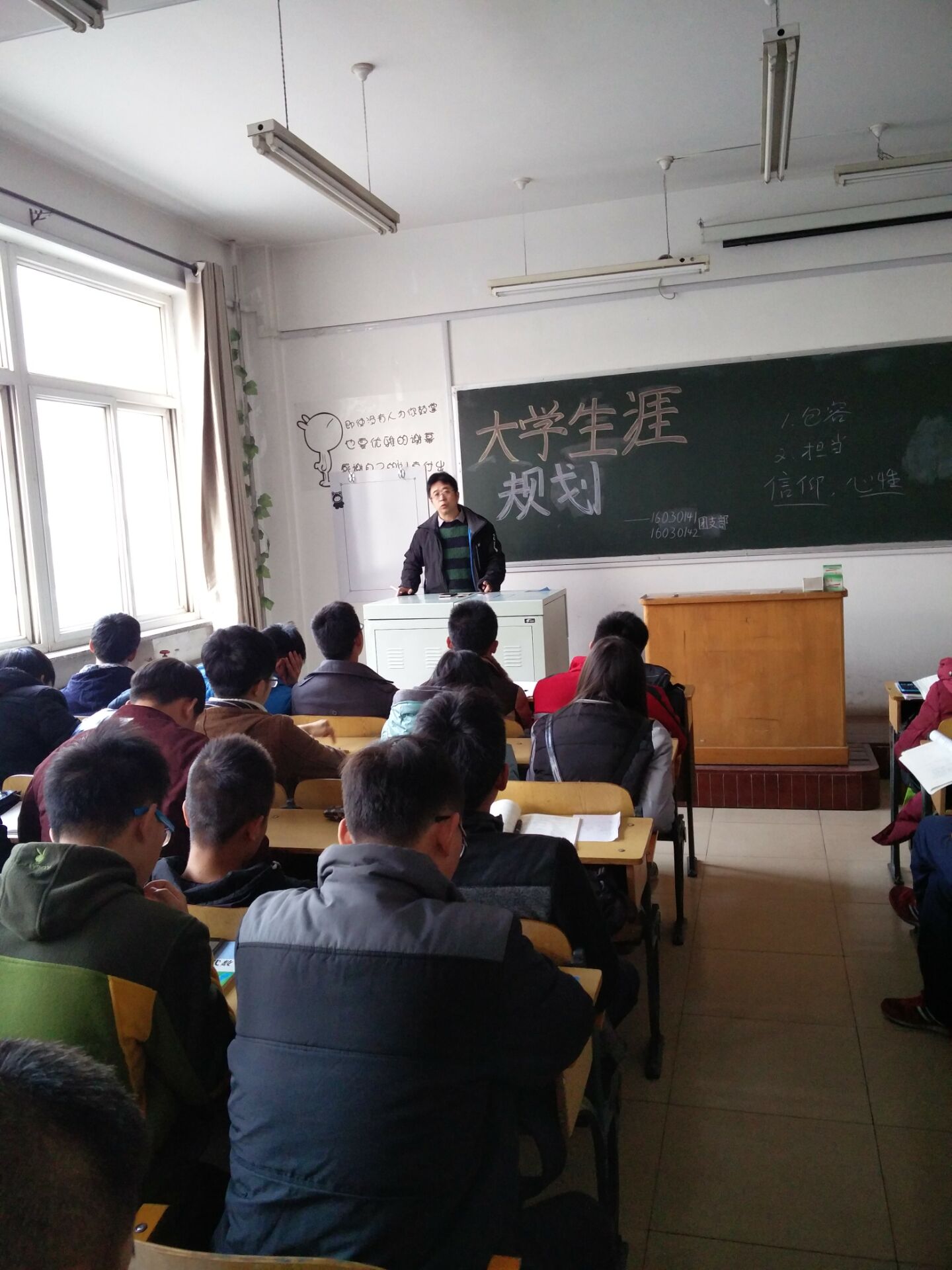 16030141班和160301412班共同召开了以“大学生涯规划”为主题的班会。班会上,我们有幸请来侯华书记为大家做演讲。16030141班的班主任闫峰老师也出席了班会。