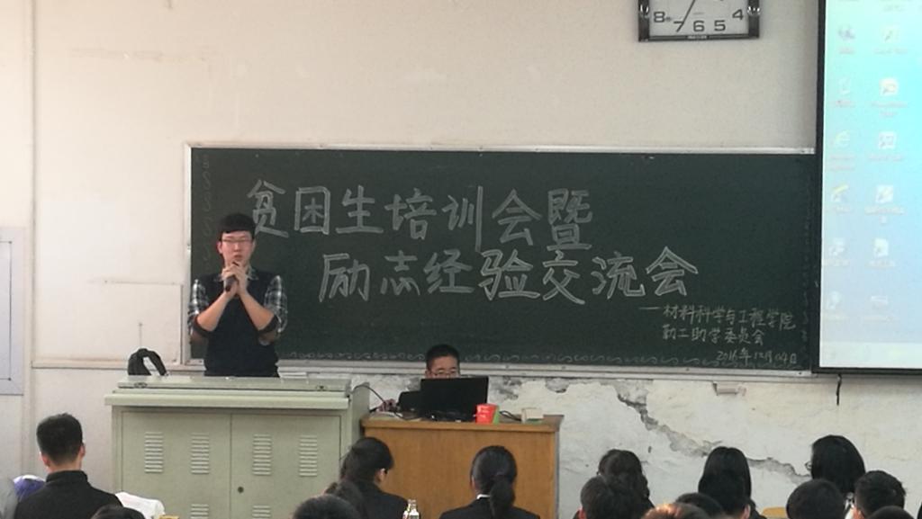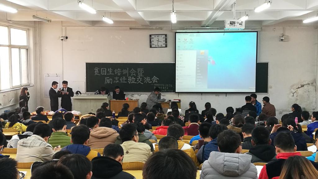 勤工助学委员会举办的贫困生培训会暨励志经验交流会在10202h教室准时开始。勤工助学委员会全体成员以及大一大二的所有贫困生参加了此次交流会。学生科殷炳叶老师和勤工助学部分服务队队长及兄弟院助学部部长出席了会议。