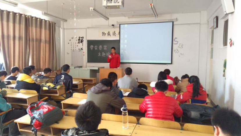 本次活动分为班内感恩宣传、感恩父母、感恩朋友、感恩师长、感恩社会、感恩班会六个环节依次展开。
