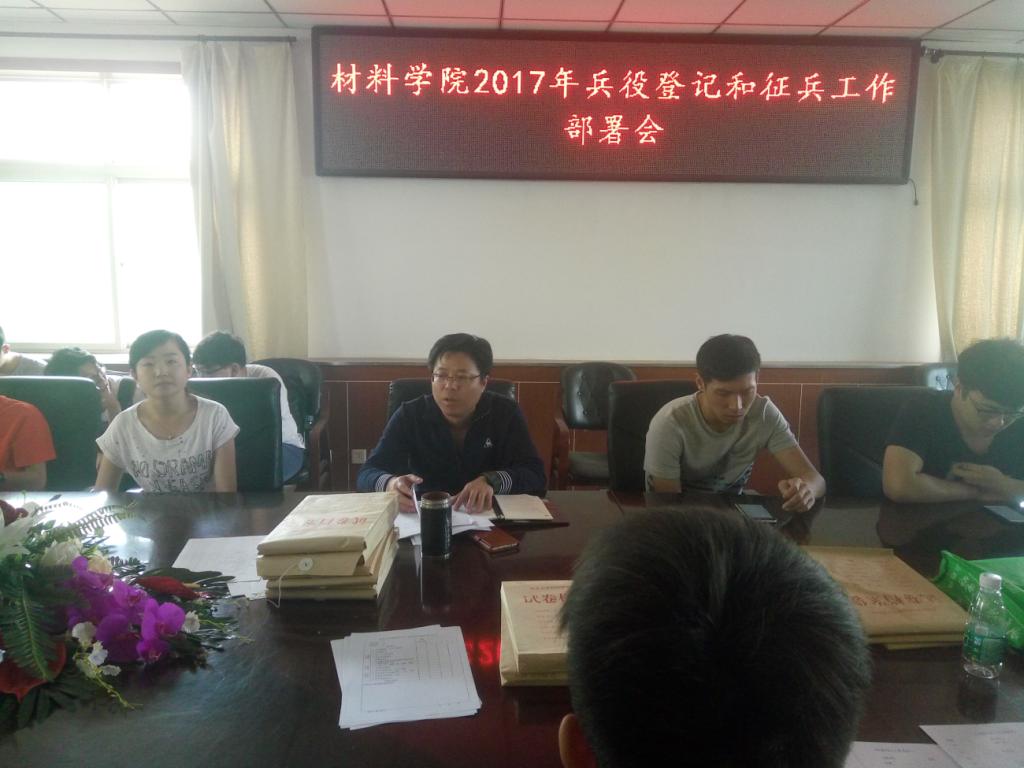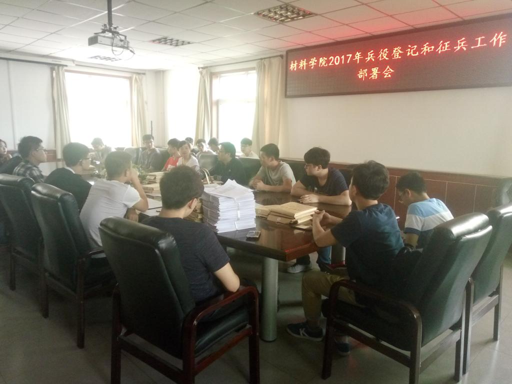 在院办会议室召开了2017兵役登记与征兵工作部署会。党委副书记廖海洪老师主持会议,学生科史艳丽老师及各班班长参加了此次部署会。