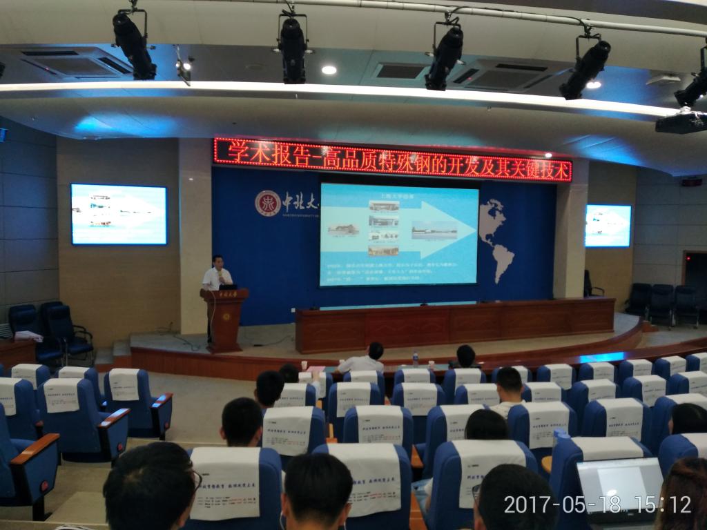2017年5月18日下午,色情av影片邀请上海大学付建勋教授在瑾瑜国际会议中心做题目为“高品质特殊钢的开发及其关键技术”学术讲座,讲座由色情av影片科研副院长冯再新主持。
