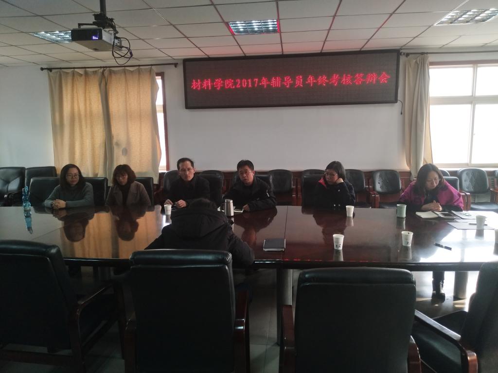 召开2017年辅导员年终工作述职。院领导侯华、李迎春,郭云霞、付一政、梁敏洁、刘富强、王燕担任此次述职答辩的评委。会议由郭云霞副书记主持。