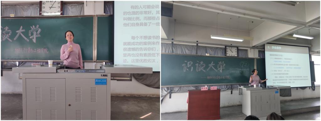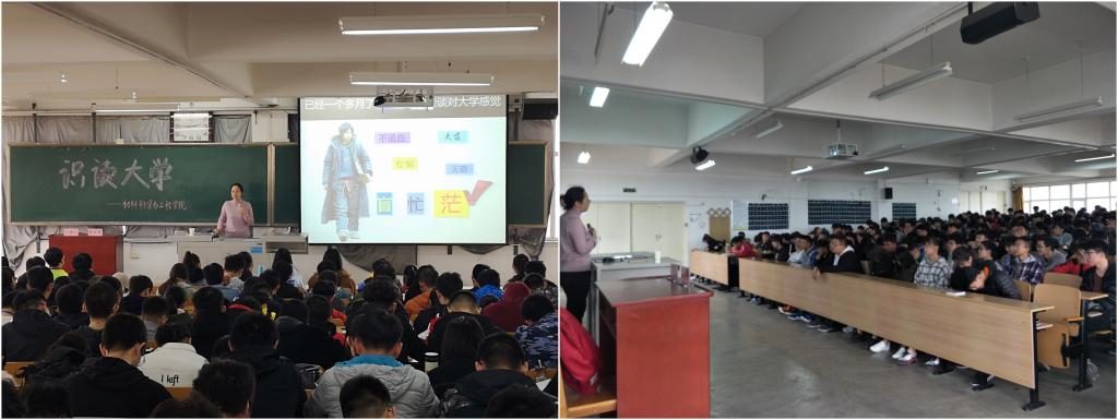 在14502H为全院2018级新生进行了一场题为《识读大学》的主题教育活动,分上、下午两场,历时6个多小时,由院党委副书记郭云霞主讲。