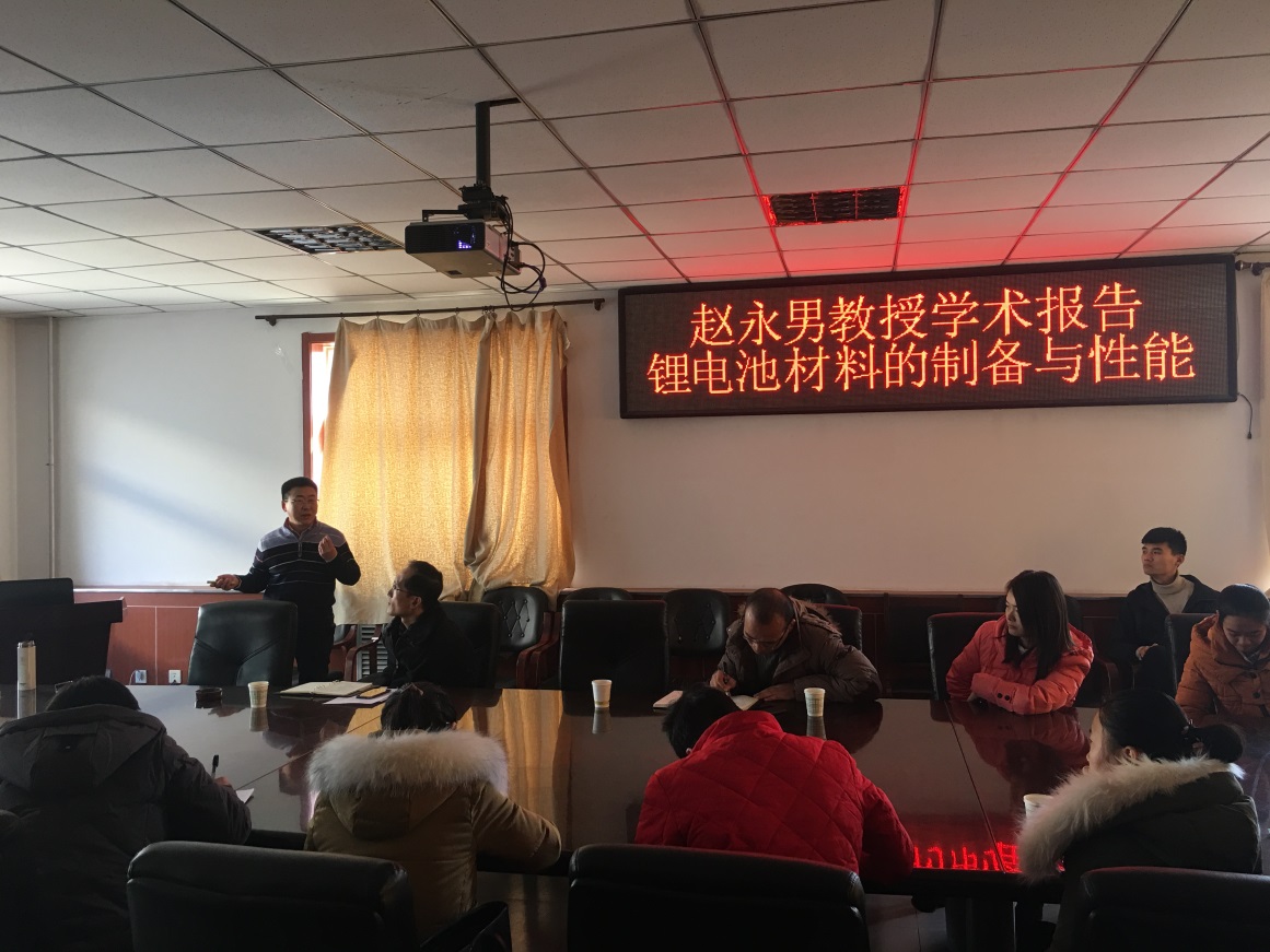 会议室为色情av影片师生作了题为《锂电池材料的制备与性能》的学术报告。报告由色情av影片科研与学科建设副院长刘斌主持。参会人员有王延忠副教授,王慧奇副教授、渠永平博士、陈彦俊博士、张惠芳博士、李宁博士及相关研究方向的研究生。