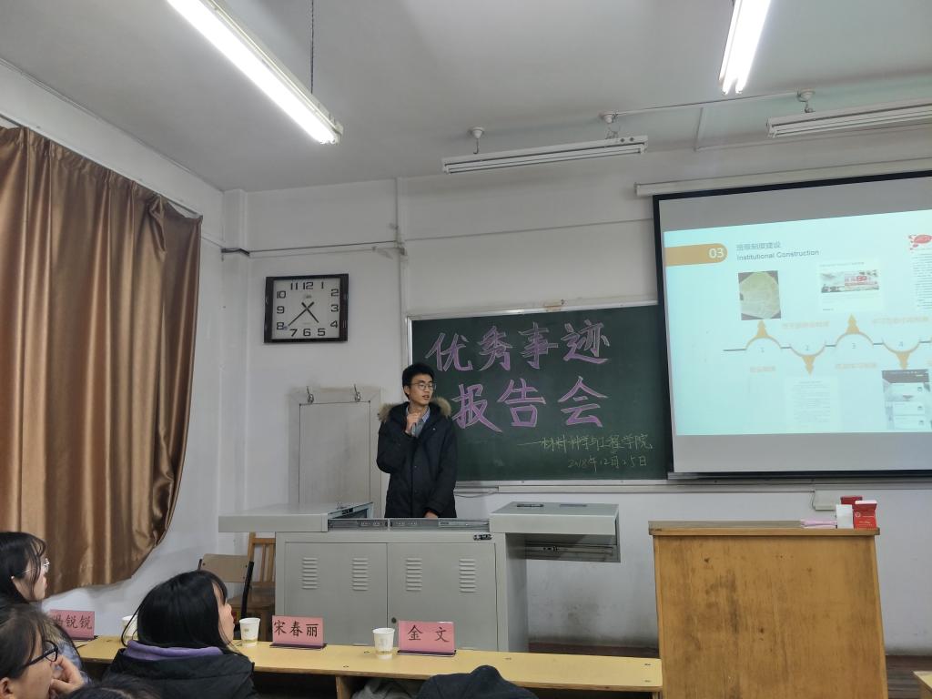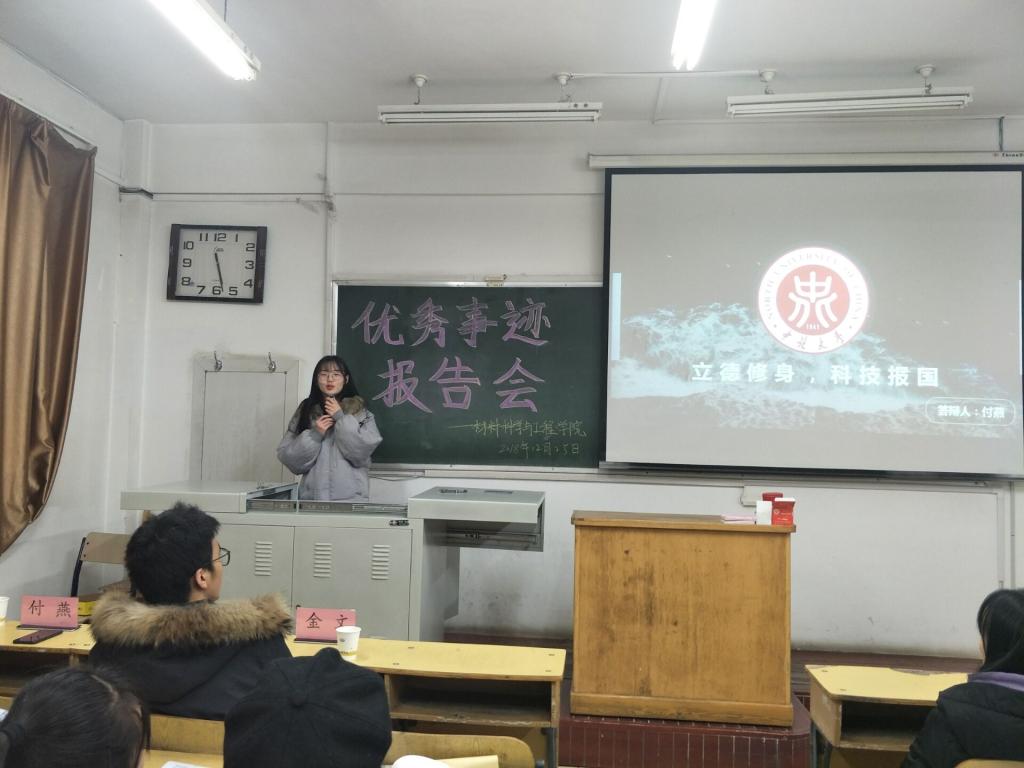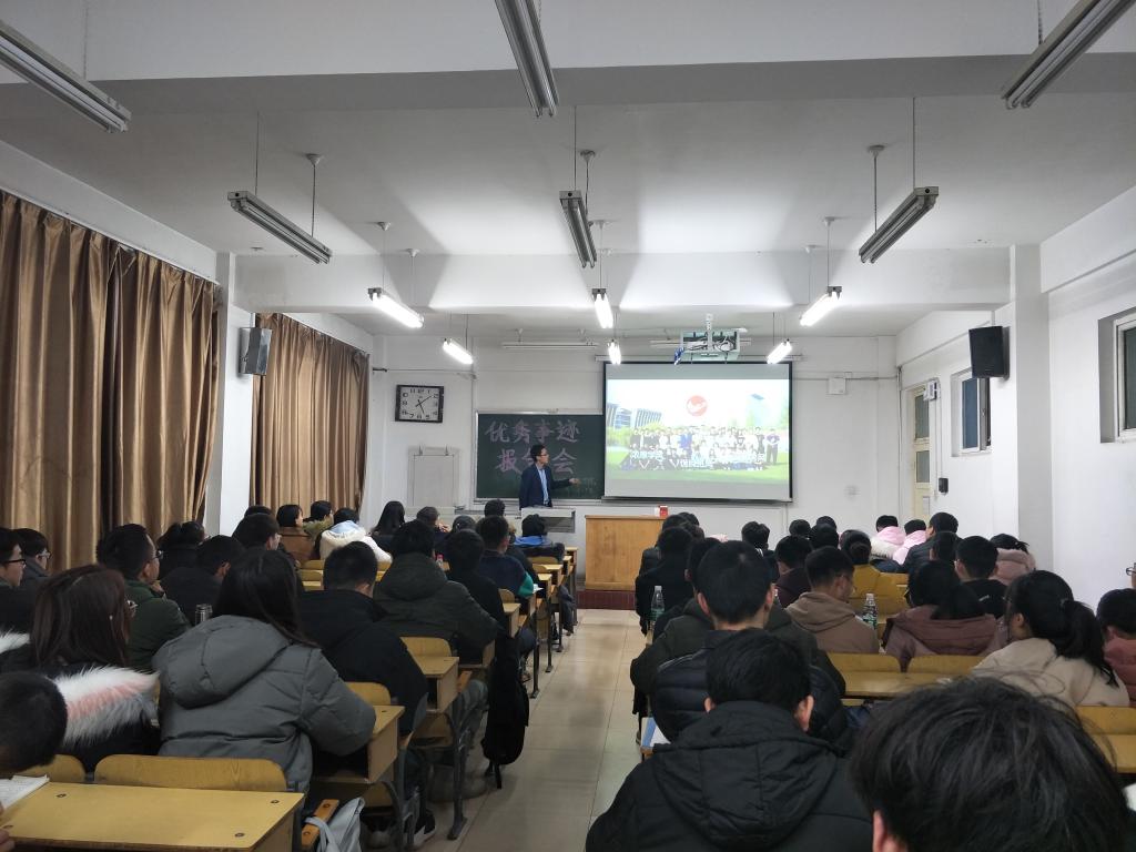 在主持人言简意赅的开场白下,宣讲会正式开始。首先是金文学长分享了他们班级两年以来取得的成绩,他认为一个优秀的班集体离不开个人的努力及优秀的管理,优秀的管理造就坚实的凝聚力,而个人的荣誉成就集体的荣誉。接下来,冯锐锐学长以视频的形式向我们展示了他所在的优秀班级,包揽专业全部保研名额,11人次发表SCI6篇,200人次院级以上奖项。然后,付燕学姐告诉大家学习是一个坚持不懈的过程,大学期间要注重培养学会独立思考和解决问题能力;学好理论知识,积极参与课题,参加科技赛事。