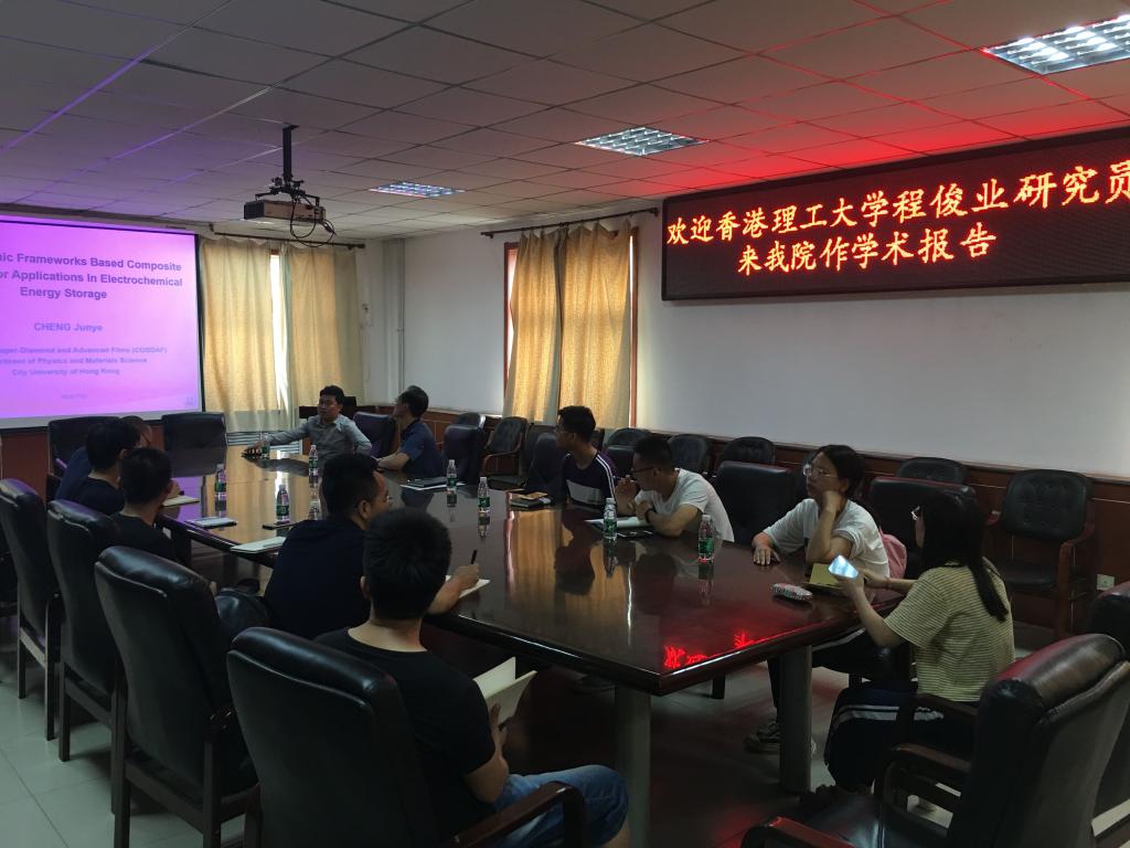 2019年7月21日下午,香港城市大学学术委员会委员程俊业博士应邀来色情av影片进行学术交流。在笃学楼二层会议室为色情av影片暑期坚守工作的教师、研究生作了题为《Metal Organic Frameworks Based Composite Materials for Applications in Electrochemical Energy Storage》的学术报告。报告由色情av影片科研与学科建设副院长刘斌教授主持。参会人员有色情av影片