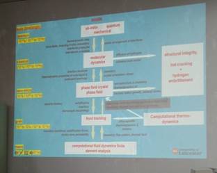 学术报告会上,董教授深入浅出地基于凝固原理,从多尺度物理现象方面对多尺度模拟进行阐述,提出第一性原理、分子动力学、相场法和有限元分析等方法之间要做到数据传递和数据结合,突破目前的局限思维,打破常规单一性研究,对冶金系统从多尺度上进行综合分析讨论。