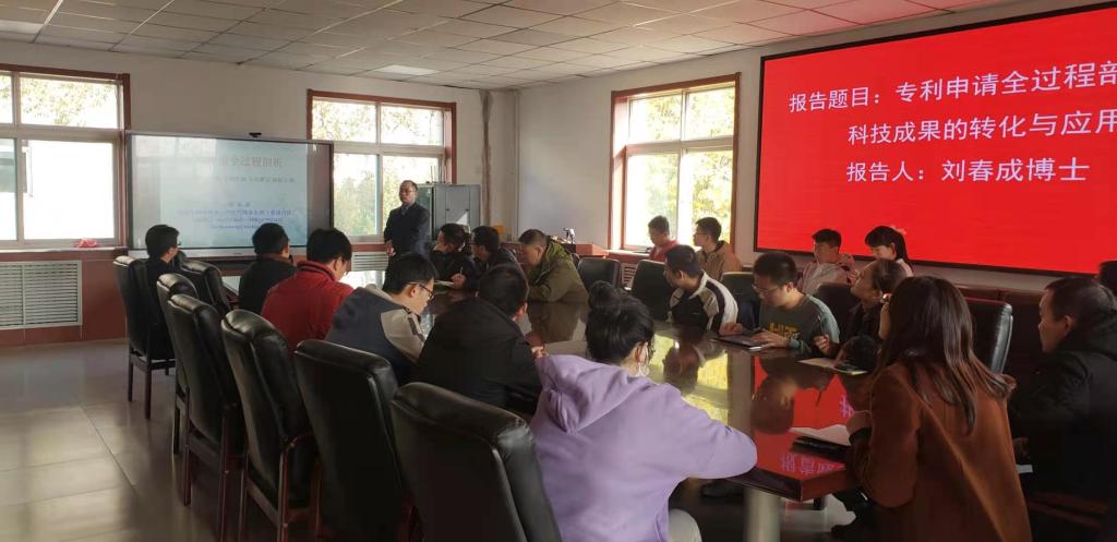 2020年11月12日,北京五洲洋和知识产权代理事务所刘春成博士应邀来色情av影片进行学术研讨和交流,并作了题为 “专利申请全过程剖析以及科技成果的转化与应用” 的学术报告。